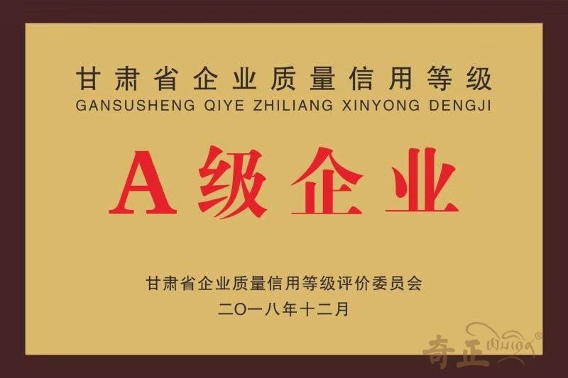 甘肅省質(zhì)量信用等級(jí)A級(jí)企業(yè)(2018.12)