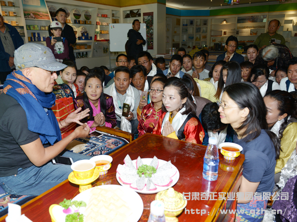 宗薩欽哲仁波切是不丹的藏傳佛教薩迦派的尊者,第三世欽哲傳承的主要持有人,其秉承藏傳佛教優(yōu)良的傳承和教育,享譽(yù)世界,是當(dāng)今有創(chuàng)意的年輕一代藏傳佛教導(dǎo)師之一。此次仁波切輕裝簡(jiǎn)行,詳細(xì)地參觀了奇正公司藏醫(yī)藥展館,特別對(duì)于歷代藏醫(yī)藥大師表示了崇敬和贊嘆。在展館互動(dòng)區(qū),仁波切慈悲地接受了公司的請(qǐng)求,答應(yīng)對(duì)拉薩“光明種子班”人才培養(yǎng)計(jì)劃進(jìn)行祈福和加持,并現(xiàn)場(chǎng)和“光明種子班”首屆讀書(shū)會(huì)的成員們進(jìn)行了交流。