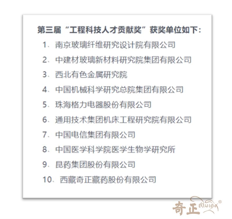 近日,第三屆中華國(guó)際科學(xué)交流基金會(huì)“工程科技人才貢獻(xiàn)獎(jiǎng)”獲獎(jiǎng)名單揭曉,奇正藏藥榮譽(yù)上榜。