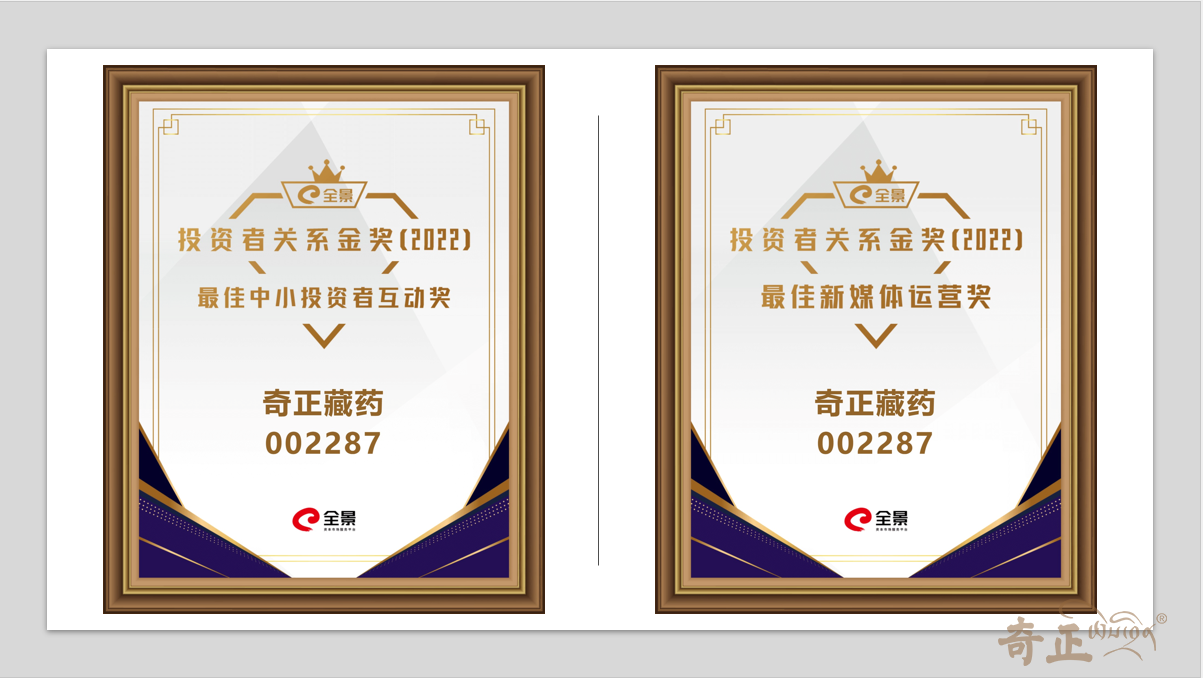 5月23日,“全景投資者關(guān)系金獎(jiǎng)”2022年度全國(guó)性評(píng)選的獲獎(jiǎng)榜單正式揭曉,奇正藏藥喜提“最佳中小投資者互動(dòng)獎(jiǎng)”、“最佳新媒體運(yùn)營(yíng)獎(jiǎng)”兩項(xiàng)殊榮。