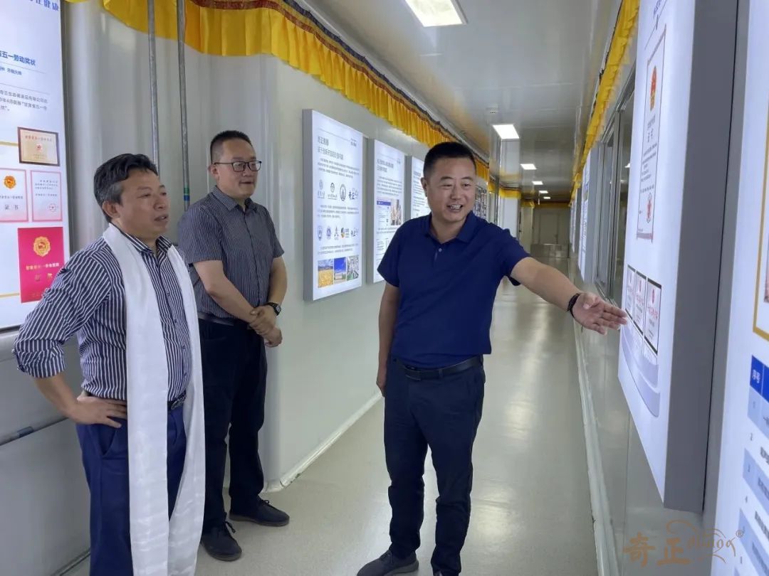 2023年7?31?上午,國家糧?和物資儲(chǔ)備局、科學(xué)研究院?席研究員譚斌??蒞臨奇正健康,參觀了公司?稞植物基?產(chǎn)線、保健?品?產(chǎn)線,集團(tuán)總經(jīng)理程若瓊、副總經(jīng)理任中鋒陪同,熱情接待并詳細(xì)介紹了?稞植物基?品加?的?藝、設(shè)備和技術(shù)創(chuàng)新,以及奇正集團(tuán)業(yè)態(tài)分布、企業(yè)?化、公益事業(yè)、健康品公司發(fā)展歷程、保健?品及?稞系列產(chǎn)品。