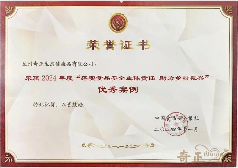會上,舉辦了中國食品安全報社智庫專家聘任儀式,并發(fā)布了2024年度食品安全社會共治十佳案例、創(chuàng)新案例、優(yōu)秀案例以及“食品安全先進管理經(jīng)驗”十佳名單。蘭州奇正生態(tài)健康品有限公司獲得優(yōu)秀案例殊榮。奇正集團副總、奇正健康總經(jīng)理任中鋒與會做了經(jīng)驗及成果分享。