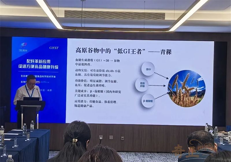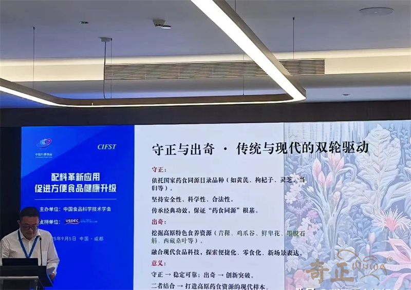 近日,由中國食品科學(xué)技術(shù)學(xué)會(CIFST)主辦的第二十五屆中國方便食品大會在四川成都召開。本屆大會以“韌性成長 向新而行”為主題,通過權(quán)威報告、行業(yè)對話、創(chuàng)新展示等不同維度,全面解碼方便食品產(chǎn)業(yè)高質(zhì)量發(fā)展的新趨勢、新動能與新路徑。奇正青稞作為青稞產(chǎn)業(yè)龍頭企業(yè),攜旗下產(chǎn)品參會,奇正集團總經(jīng)理、奇正青稞董事長程若瓊做了題為《 守正出奇--以新質(zhì)生產(chǎn)力開拓高原的藥食寶藏 》為主題的專題報告。